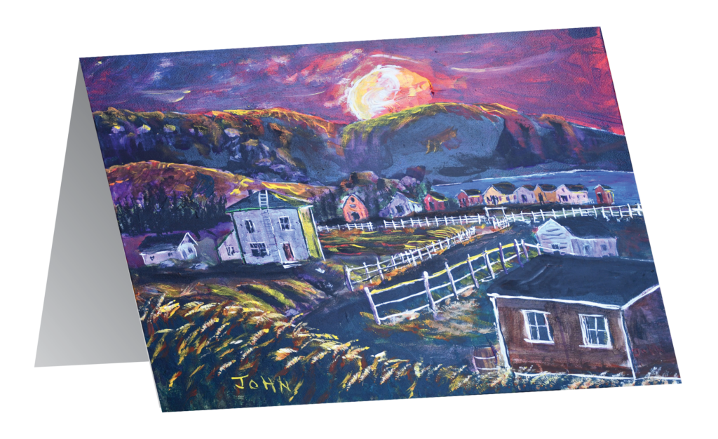 Bishop John’s subject matter ranges from Newfoundland seasides dotted with colourful dories, to local wildlife and still life. “I choose a wide variety of colours, and pay attention to value and tone. Colour then can come alive and speak through the eye then into the imagination and hopefully…the heart.
